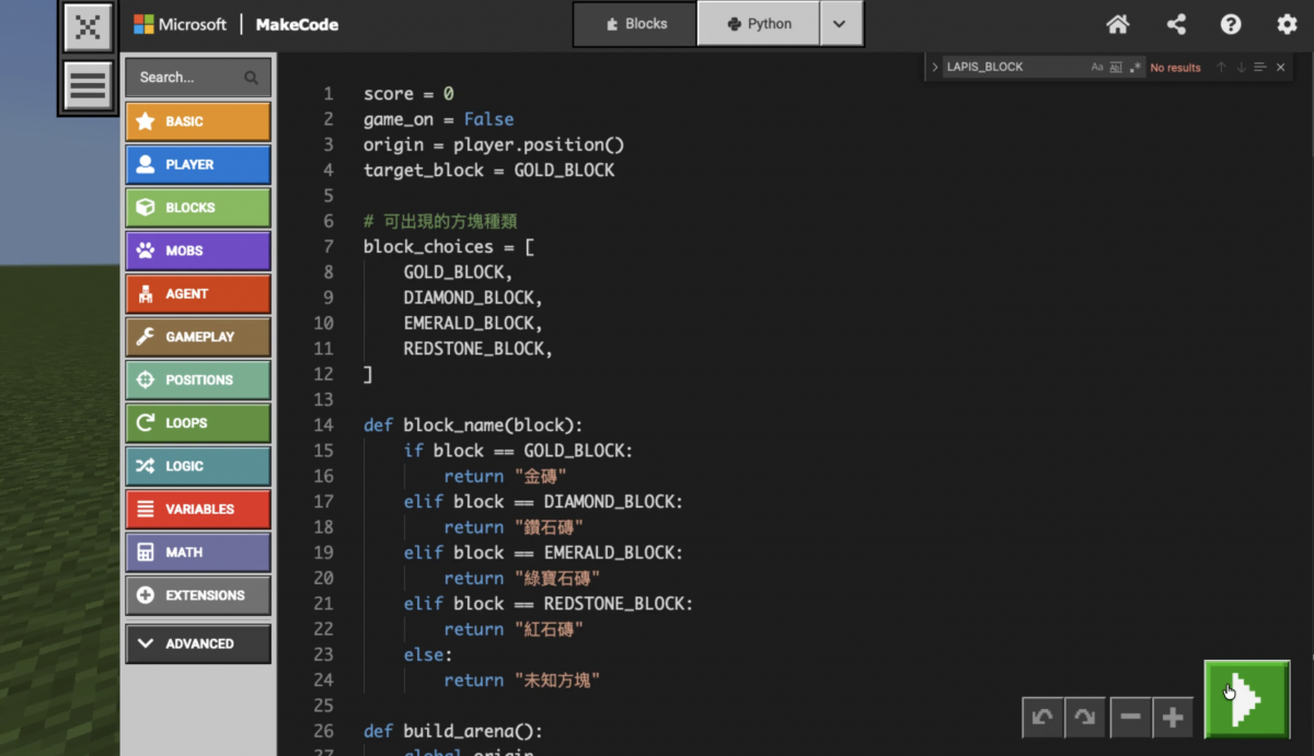 ▲ 磚塊擊破者:設計Minecraft世界小遊戲讓方塊自動掉落與擊破!